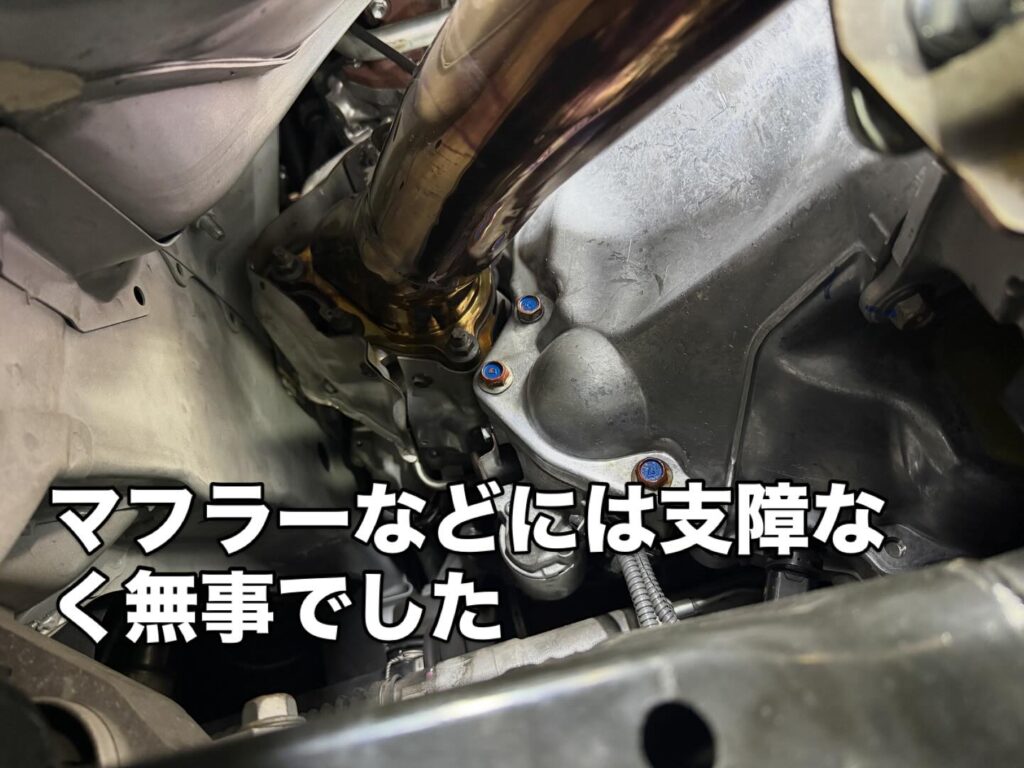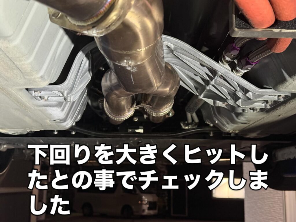 最近下回りも大きくヒットしたとの事で、下回りも点検しました。多少の傷はあったもののマフラーや足回りなど不具合はなくホッとしました。