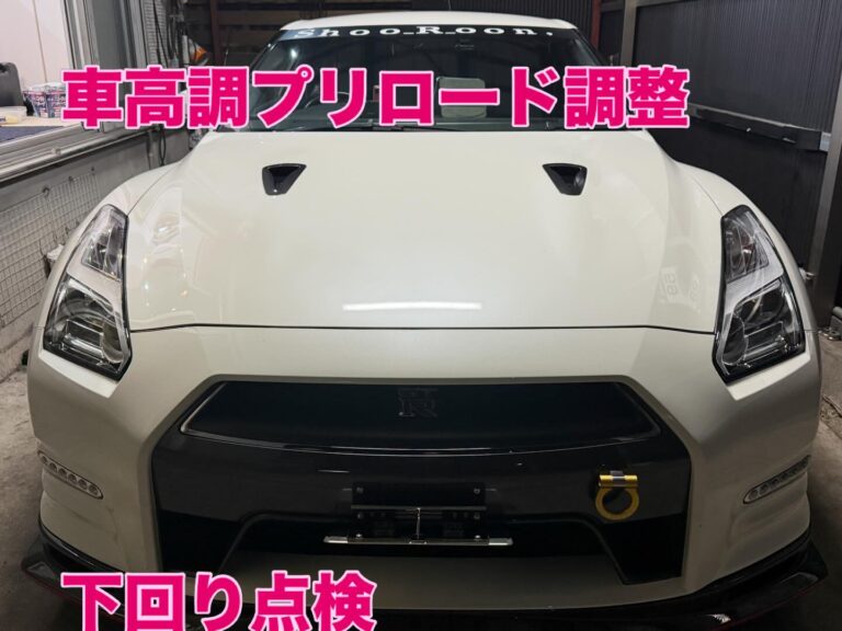 NISSAN GT-R 車高調プリロード調整・下回り点検・パン君・中嶋ワークスに…